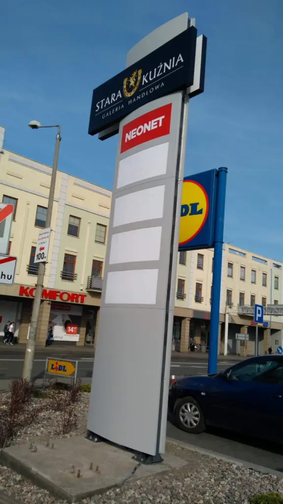 Pylony reklamowe reprezentują samodzielne konstrukcje, często umieszczane w pobliżu wejść do firm lub centrów handlowych. Stanowią doskonałą formę zwiększania widoczności marki na odległość, a ich różnorodność kształtów i rozmiarów umożliwia dostosowanie do indywidualnych potrzeb klienta.